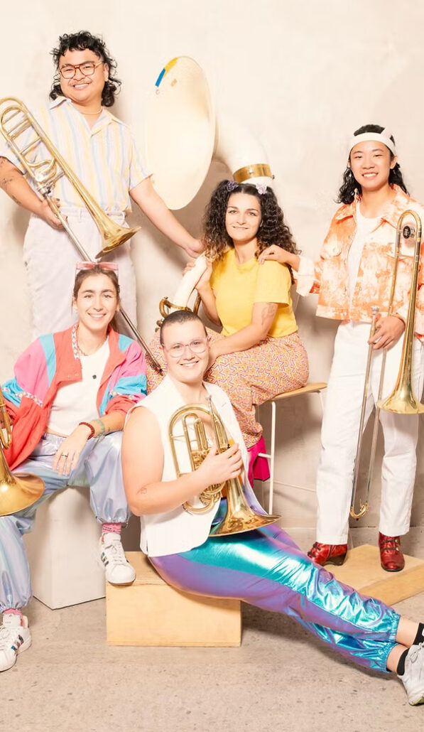 Trash Panda Brass formed in the summer of 2022 on the streets of Toronto with a simple mission of engaging crowds and spreading queer and inclusive joy. Within two years of conception, they graced the cover of Whole Note magazine, rocked TD Jazz Fest, DoWestFest, Cultivate festival, and the Distillery District Concert Series. They’ve also performed in educational workshops at Sterling Hall and O’Neill CVI, and were guest panelists at Queens University on the topic of queer representation in post-secondary music.